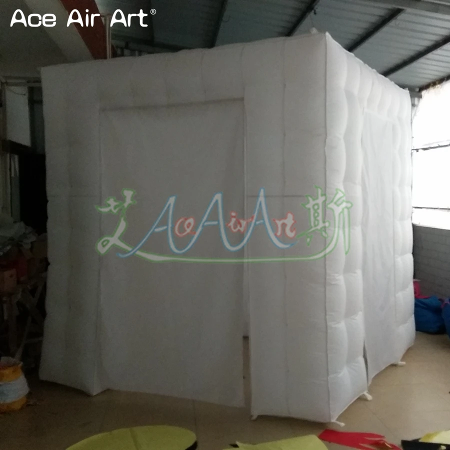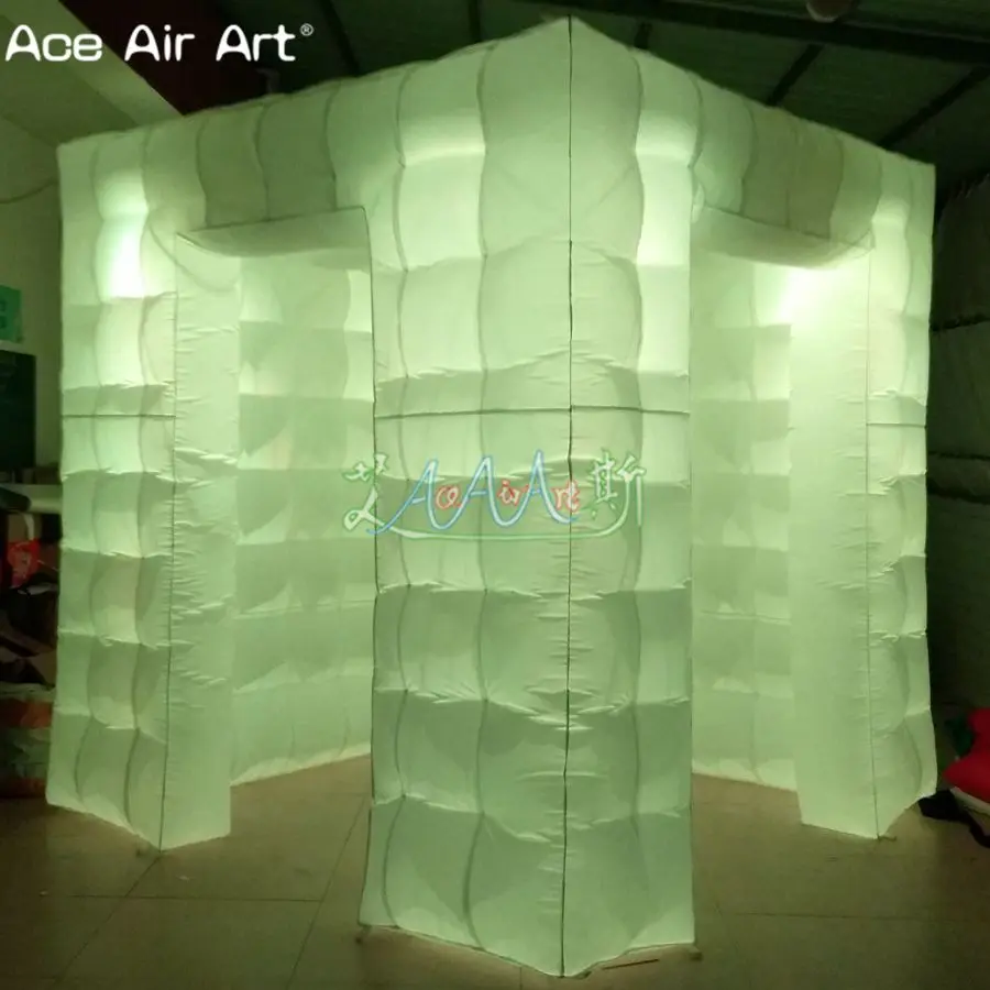 Scientific door size design inflatable photo booth propsled lighting cube tent with attached curtai